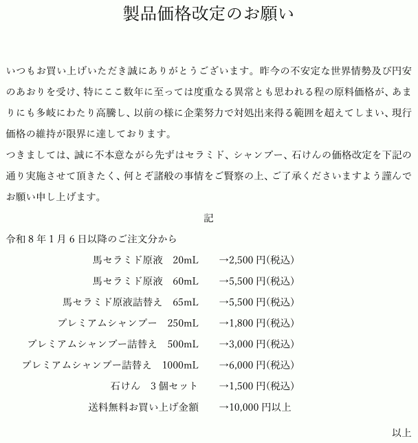 馬セラミド原液 100%『FR ビューティソースHS』 60mL